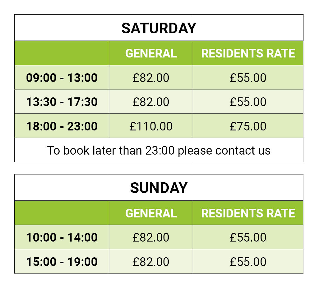 Online booking is for Saturday and Sunday bookings only. If you are interested in hiring the Centre during the week, please contact us to discuss your requirements: Monday to Thursday 9am-4pm or email: thecentre@elseapark.co.uk
